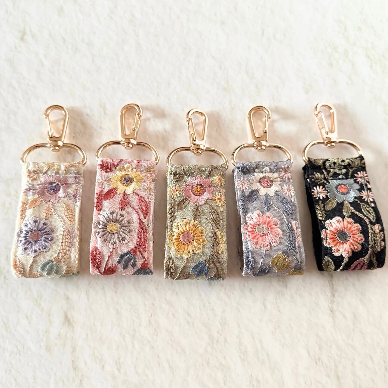 インド刺繍リボン キーホルダー ファスナーチャーム バッグチャーム ミニスマホストラップ ver.2