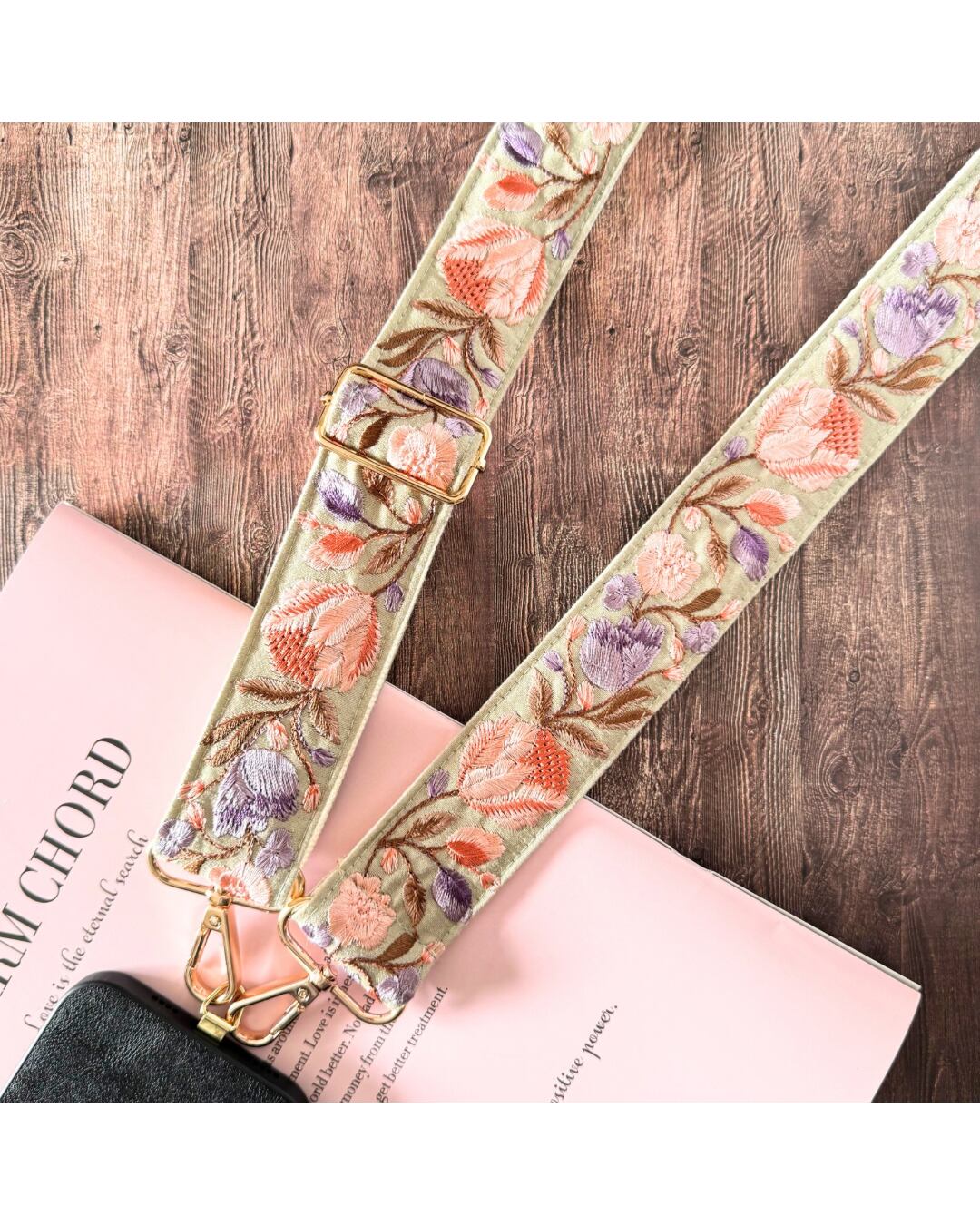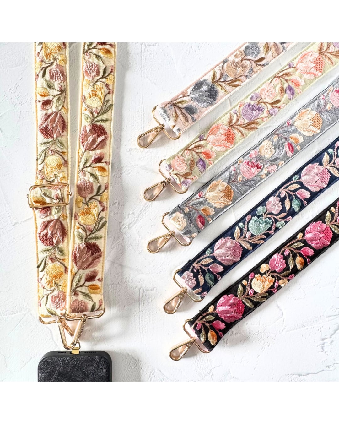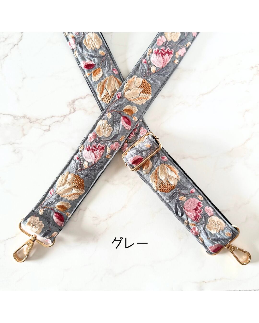 インド刺繍リボン ショルダーベルト スマホショルダー ショルダーストラップ 太め チューリップ