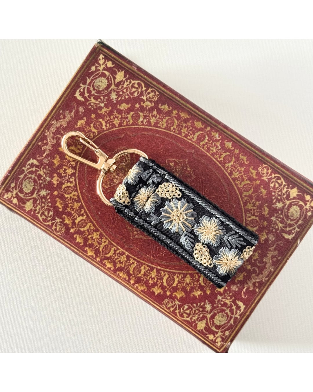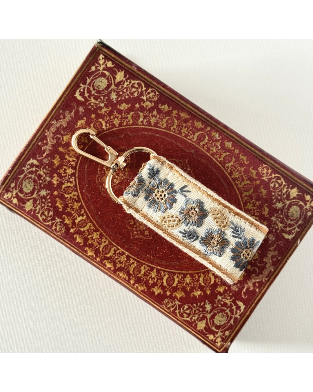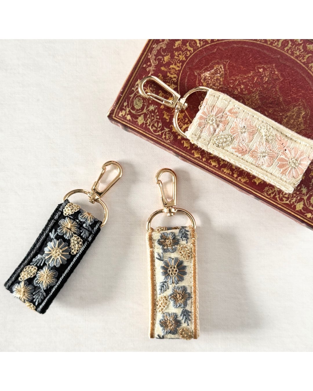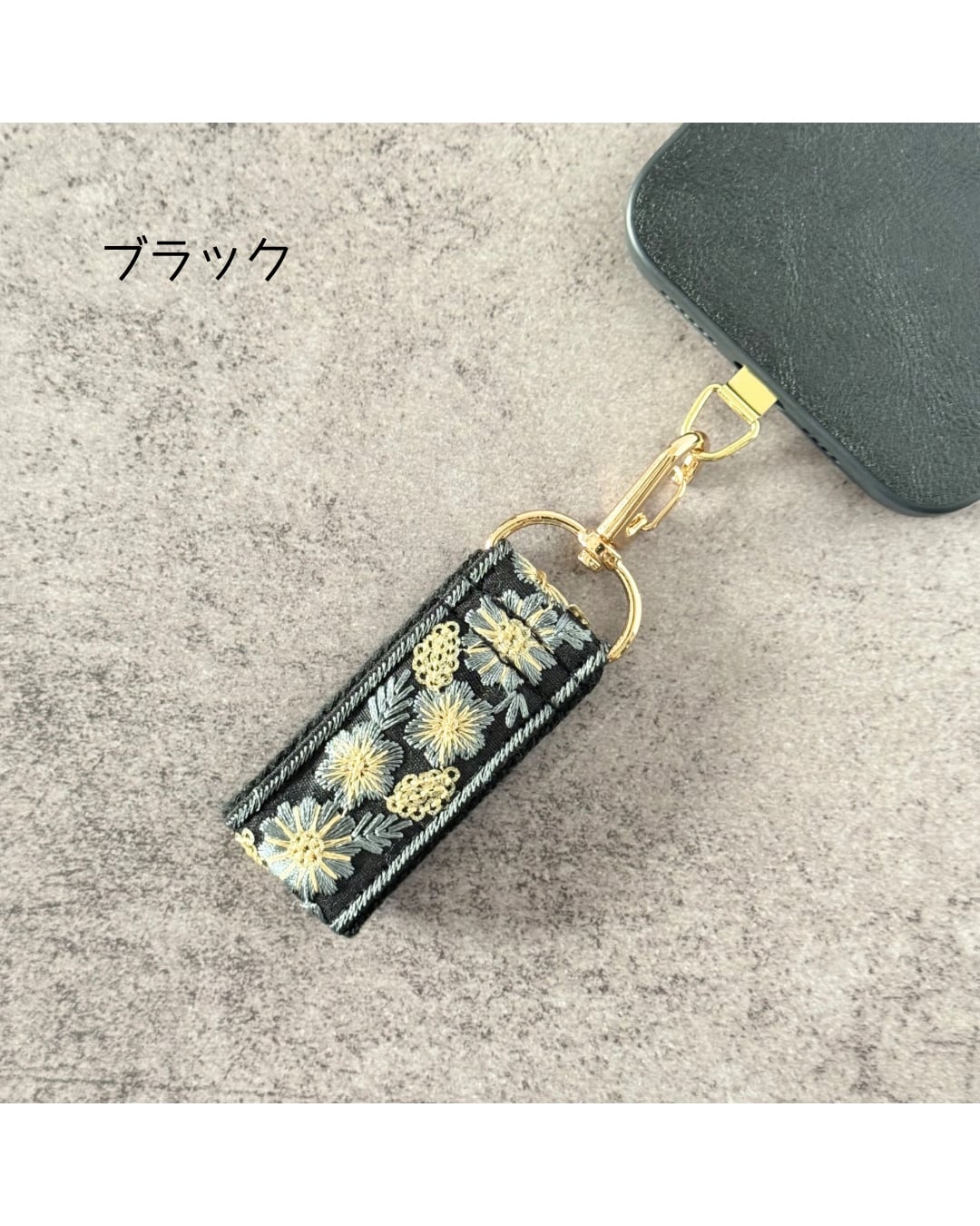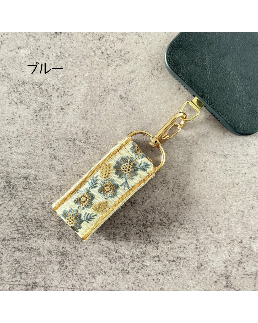インド刺繍リボン キーホルダー ファスナーチャーム バッグチャーム ミニスマホストラップ Calm
