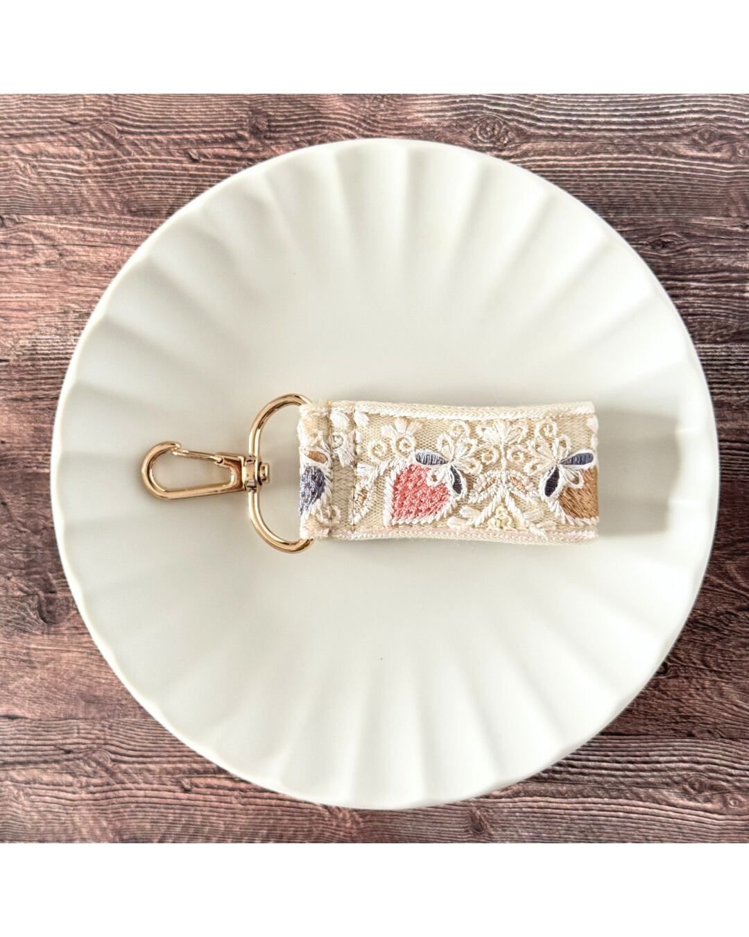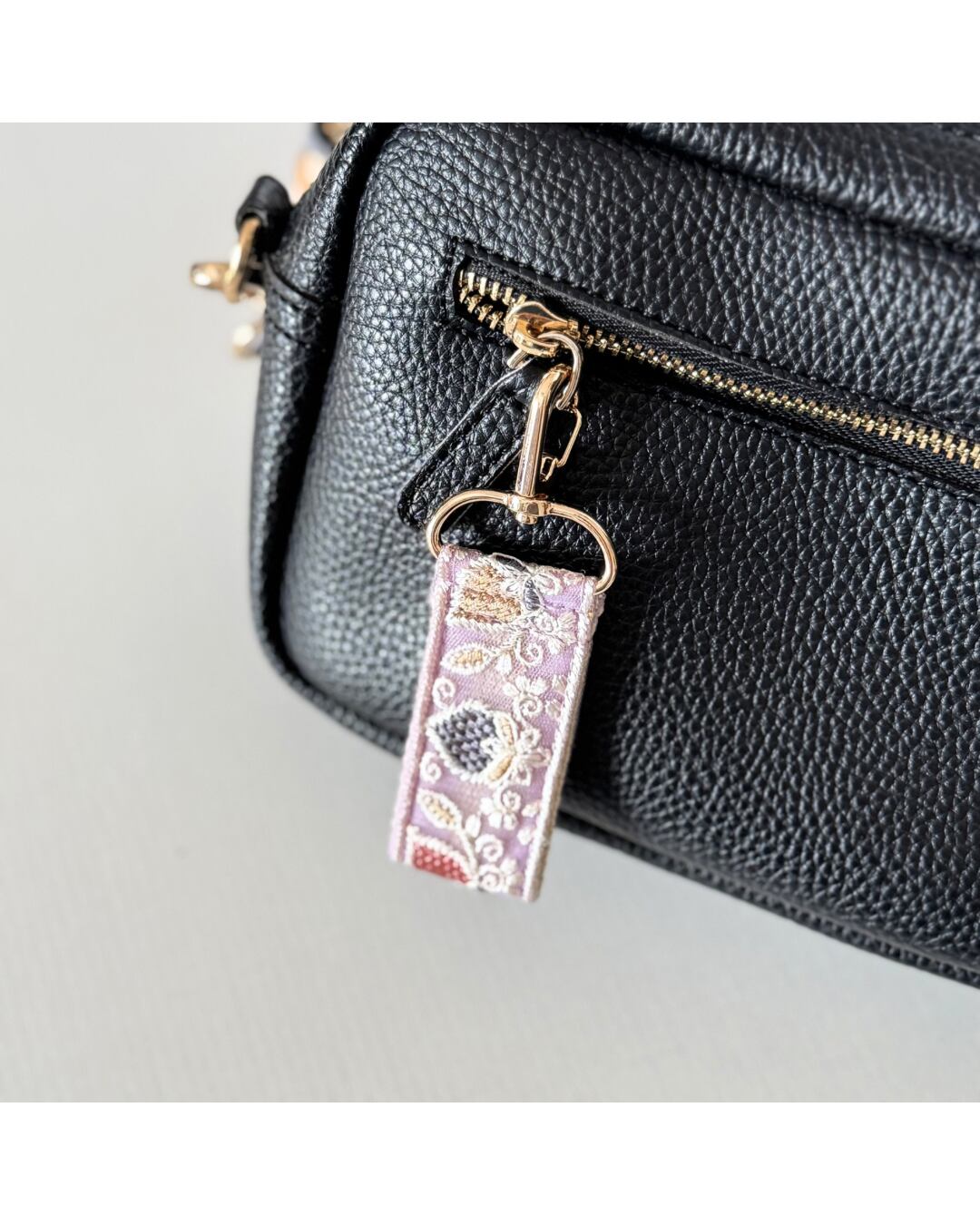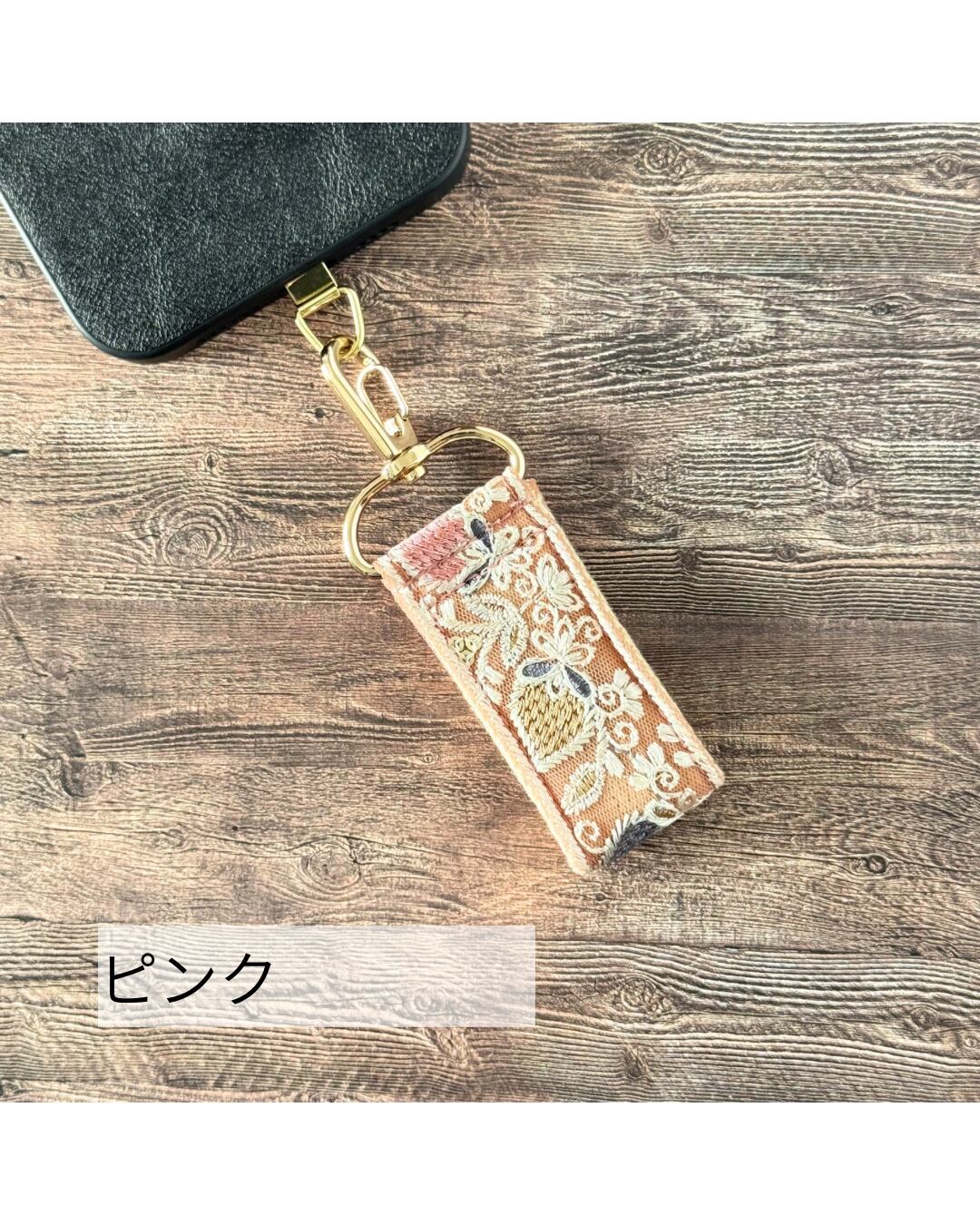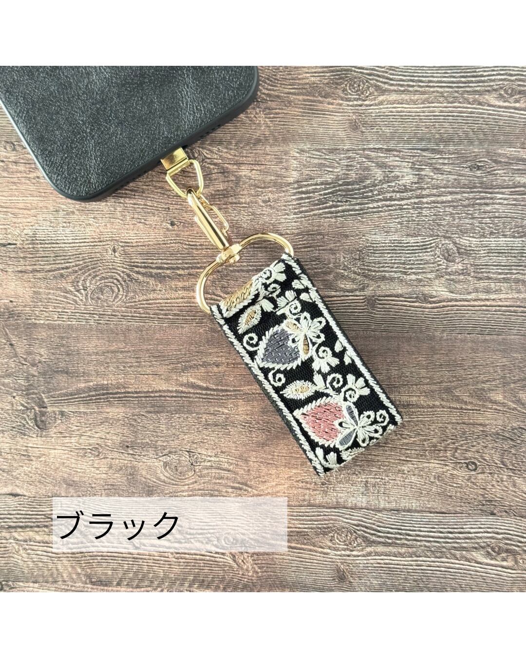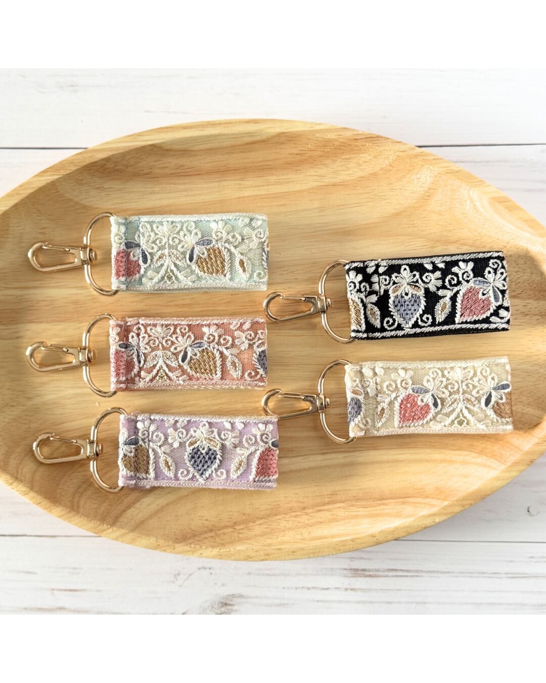 インド刺繍リボン キーホルダー ファスナーチャーム バッグチャーム ミニスマホストラップ いちご