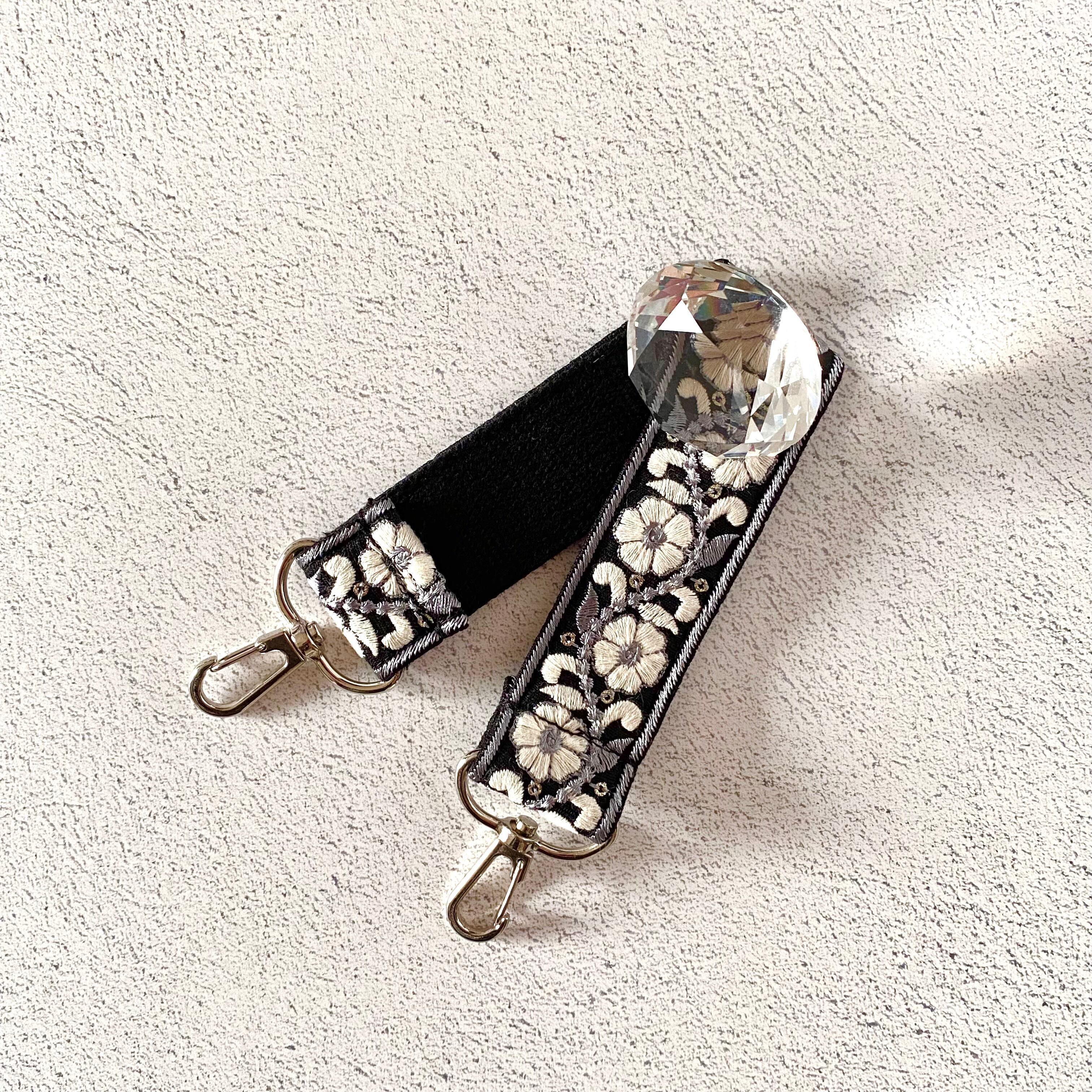 インド刺繍リボン ハンドストラップ スマホストラップ ブラックシルバー