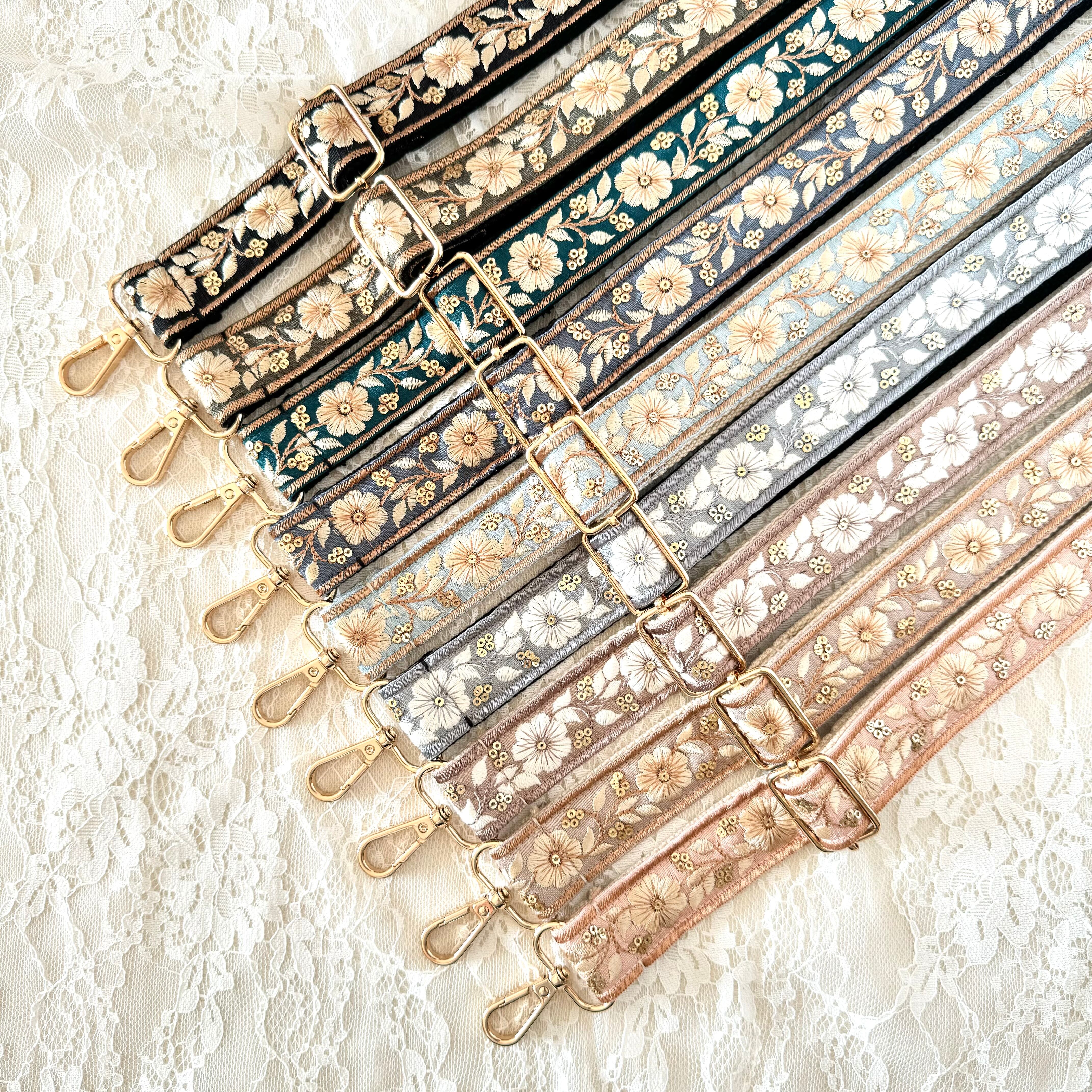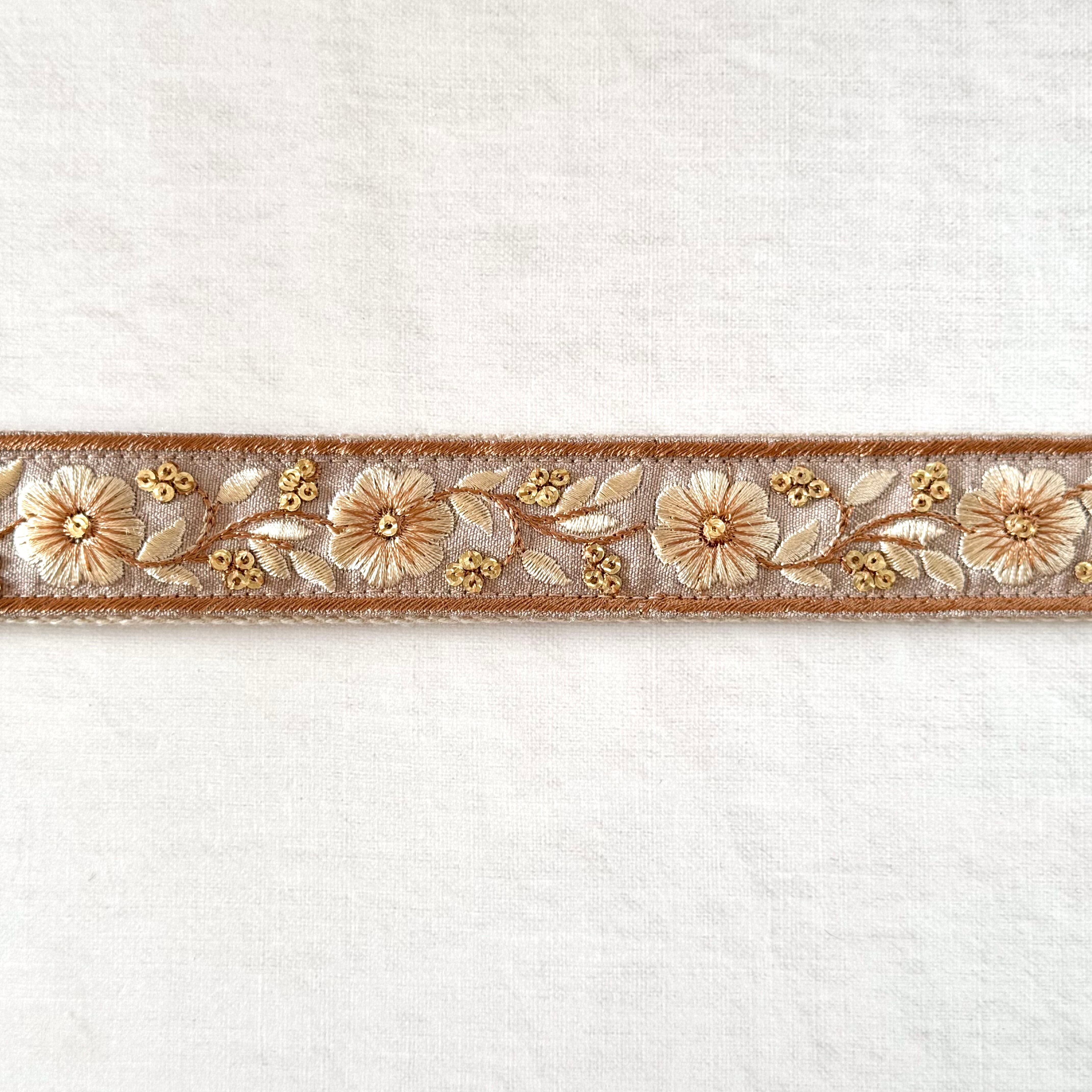 インド刺繍リボン スマホショルダー ショルダーストラップ ショルダーベルト ピンクベージュゴールド
