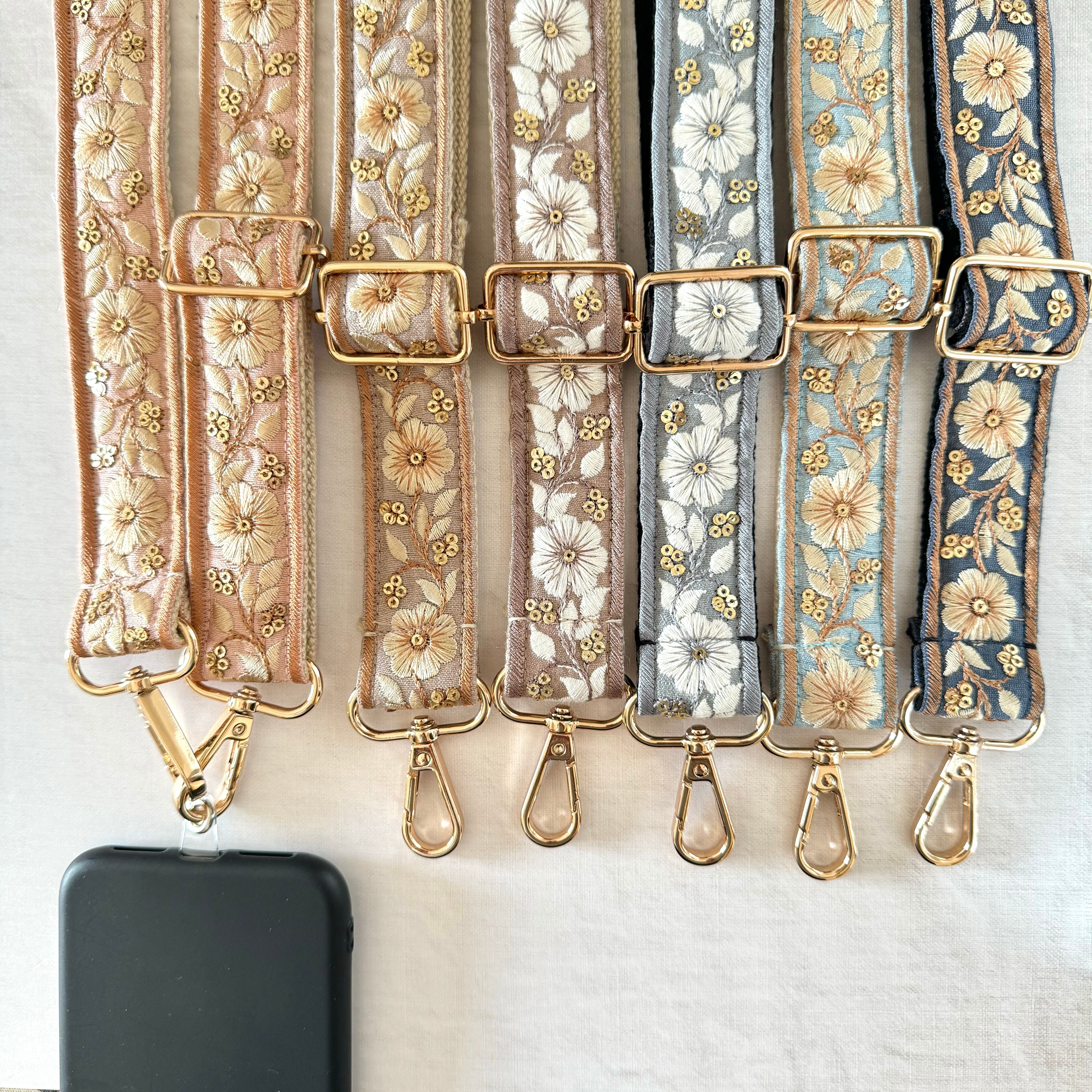 インド刺繍リボン ハンドストラップ スマホストラップ ショートストラップ スカイブルーゴールド