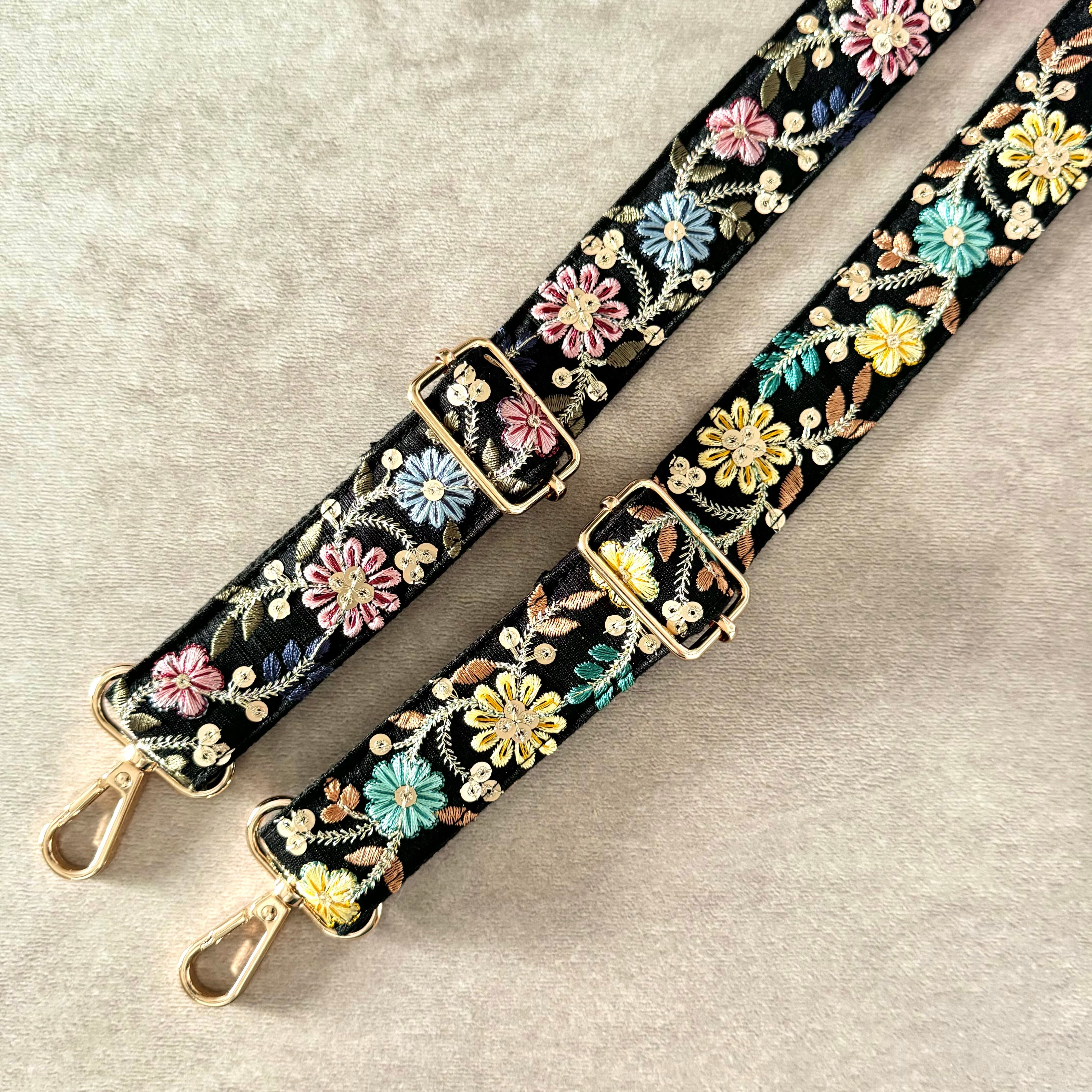 インド刺繍リボン スマホショルダー ショルダーストラップ ショルダーベルト ブラックブルーピンク