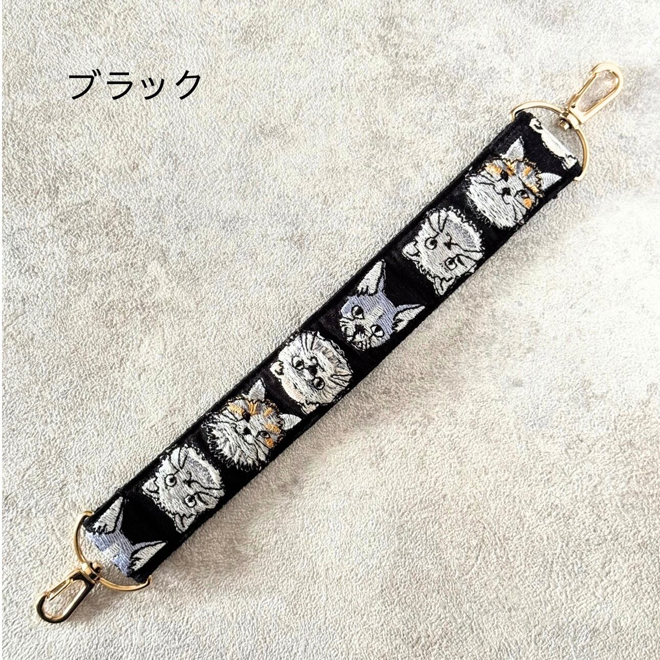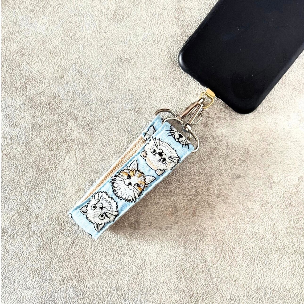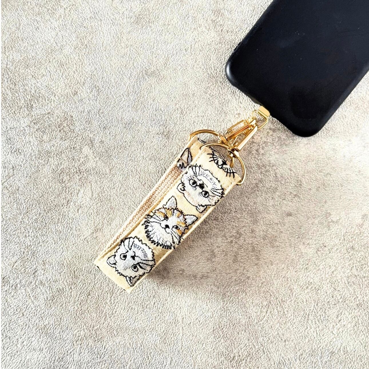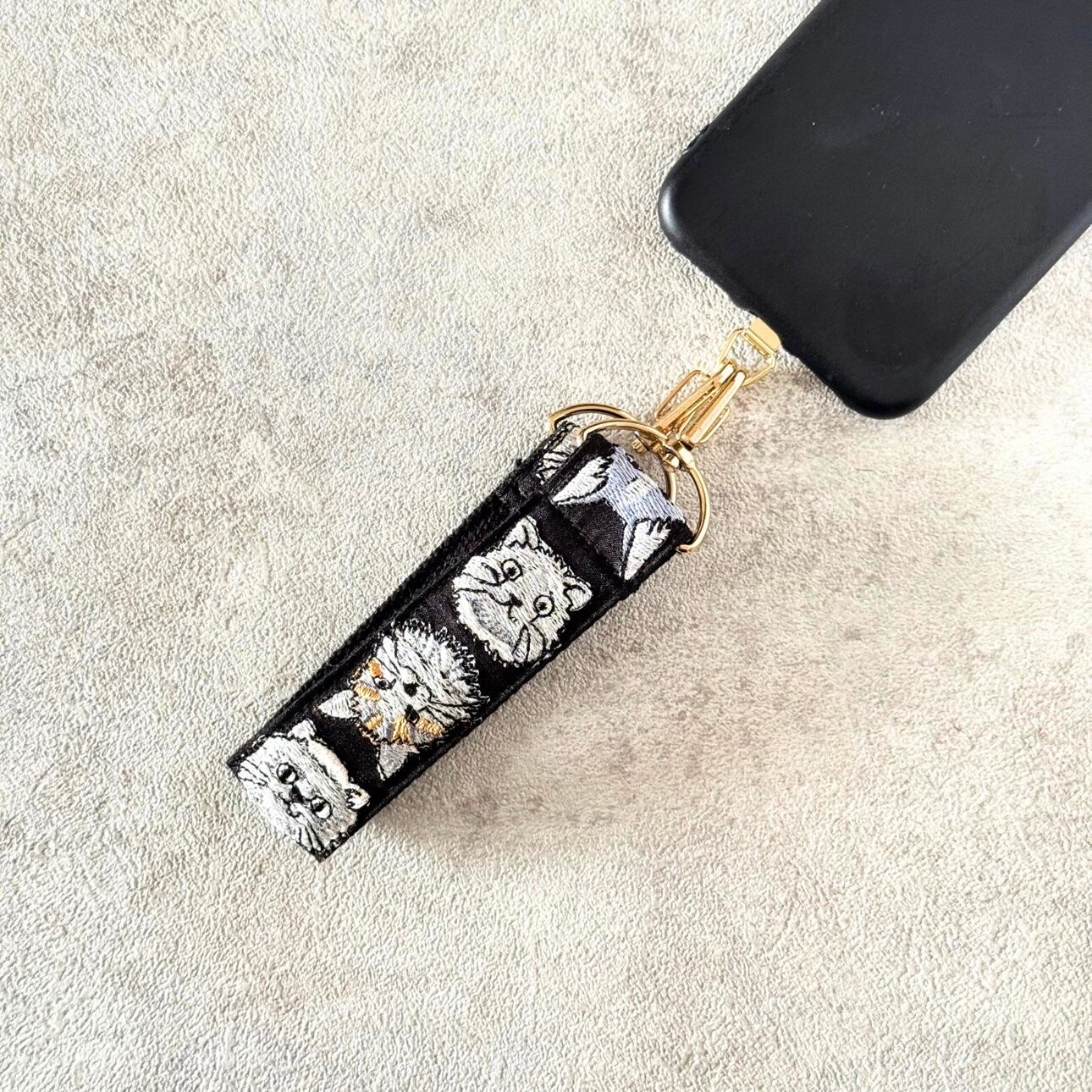 インド刺繍リボン ハンドストラップ スマホストラップ ショートストラップ 猫